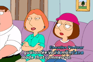 I guarantee you a man made that commercial. Of course a man made it. It's a commercial, lois, not a delicious Thanksgiving dinneR. Dad, we won a boat! We won a boat!