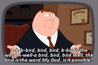 A-b-b-bird, bird, bird, b-bird's the word A-well-a bird, bird, bird Well, the bird is the word My God, is it possible?