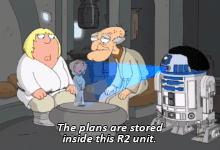 The plans are stored inside this R2 unit. Help me, Obi-Wan Kenobi, you're my only hope. All right now, what do I click?