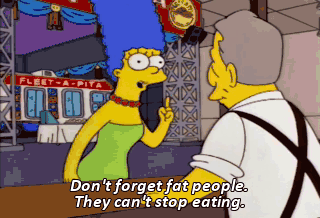 Don't forget fat people. They can't stop eating. Hey, pretzels.