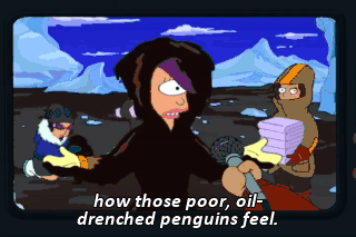 how those poor, oil-drenched penguins feel. Oily humanoid. At the time of the crash, the tanker captain... had an alcohol level of .08%, well below the legal limit for robots.