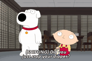 (SNIFFING) Did you just crap your diaper? I got scared when the door closed.