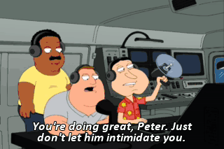 You're doing great, Peter. Just don't let him intimidate you. Guys, guys. Someone's getting frogged in the clubhouse. Quagmire! She sounds fat.
