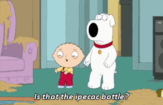 Is that the ipecac bottle? Oh, no. No, please, not this. Oh, God, it's not gonna be coming out of us, it's gonna be going... Oh, dear God... What the hell?