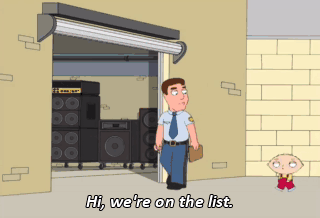 - Hi, we're on the list. - Names? Stewie Griffin and Kanye West. Yo, yo, yo.