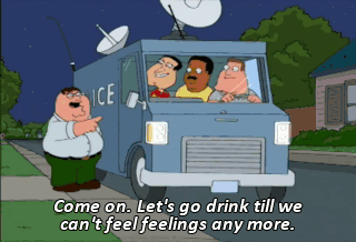 Come on. Let's go drink till we can't feel feelings any more.