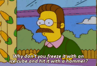 Why don't you freeze it with an ice cube and hit it with a hammer? - Works for me when I get bubbly gum in the old push broom. - That sounds okay.