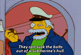 They can suck the bolts out of a submarine's hull. All right! Fangoria will give me 25 bucks for this shot. I can give you the name of a good gum and hair man.