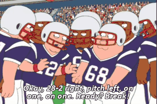 Okay, 28-2 right, pitch left, on one, on one. Ready? Break! Ready, green 54! Green 54! Set, hut, hut!