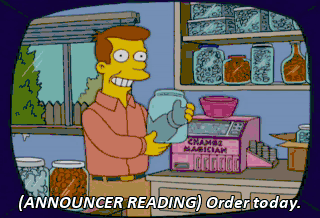 (ANNOUNCER READING) Order today. (GASPS) Bart, can I ask you an important question? How much? $29.99. (SIGHS) Here's fifty. Woo-hoo. That's your donut money, too, mister. (MOANING)