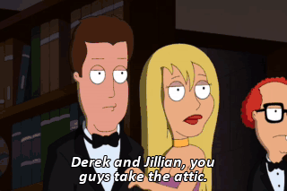Derek and Jillian, you guys take the attic. Joe and Priscilla are still passed out, so they'll be the unconscious team. And that leaves one three-person team of Mort, Consuela and Mayor West.