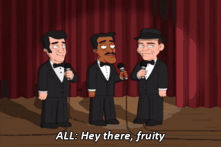 ALL: Hey there, fruity You can do my hair ALL: Hey there, fruity Don't touch me down there ALL: Hey there, fruity You're gay and I don't approve ANNOUNCER: And many more.
