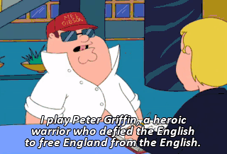 I play Peter Griffin, a heroic warrior who defied the English to free England from the English.