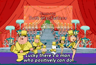 Lucky there's a man who positively can do all the things that make us laugh and cry He's a family guy