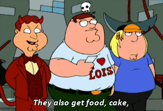 They also get food, cake, and your choice of ice-cream flavors, vanilla, strawberry, chocolate, or people. What was that? Chocolate. Now, Give me the check.