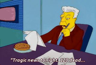"Tragic news tonight. 120 dead... in a tidal wave in Kuala La-la--" "Pur--" "Kuala Lum-pur--" - France. - Yoink!