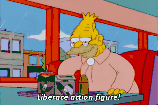 Liberace action figure! Party tonight at Roddy McDowall's. Whoo. I got a plastic Krusty-saurus.