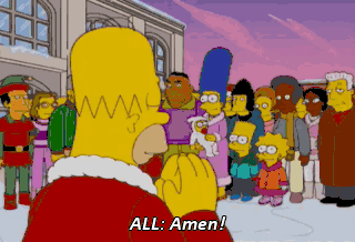 ALL: Amen! And now I think the only thing left to do is return all your gifts! Ned? It'd be my pleasure, Homer! Oh, joy! Let's see what we got here. It's a new brassiere!