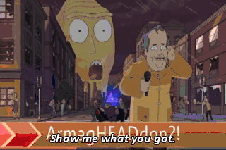 Show me what you got. I want to see what you got. RICK: Oh, boy, Time to go, Marty, Uh, where? The Pentagon. I mean, not the Pentagon. The lame one here on Earth.
