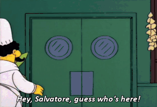 Hey, Salvatore, guess who's here! Mr. Kookalamanza and-a some real ugly kid.