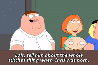 Lois, tell him about the whole stitches thing when Chris was born.