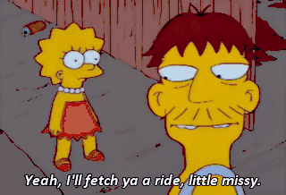 Yeah, I'll fetch ya a ride, little missy. Hop on in. Mind the skunk. Them things can go off even after they's dead. Hmm.