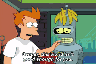 Bender, this world isn't good enough for you. Not even close. Good-bye, everybody! Don't touch my stuff after I'm dead! It's booby-trapped! Do A little dance make A little love