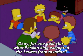 Okay, for one gold star, what Persian king exempted the Levites from taxation? Artaxerxes! Righty-o!