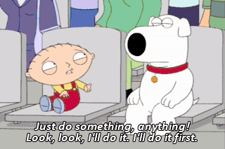 Just do something, anything! Look, look, I'll do it. I'll do it first. Look, I'll do it even worse. Look how hurt I am. We're even now! - You're going down, Brady! - You're the one who's going down, Griffin!