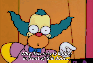 Why, this rickety ladder in front of this door... is the perfect place for this priceless Ming vase. Eh? Eh?