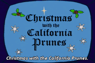 Christmas with the California Prunes. (PLAYING JAZZY TUNE) Yeah... Oh, pruny night