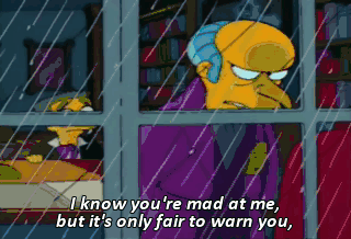 I know you're mad at me, but it's only fair to warn you,