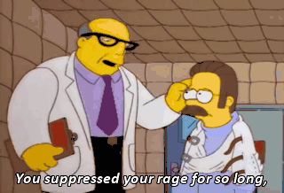 You suppressed your rage for so long, it finally erupted as a massive public explosion. It sure did-diddilly-id. All right, all right.