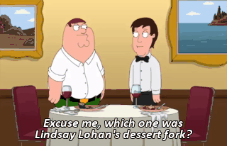 Excuse me, which one was Lindsay Lohan's dessert fork? Uh, I think it was that one. Give me cocaine!