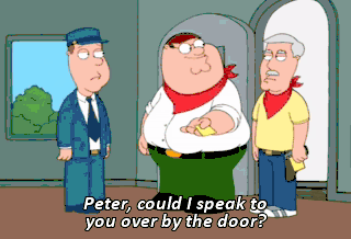 Peter, could I speak to you over by the door? Good as new. Oh, come on!