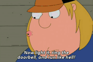 Now light it, ring the doorbell, and run like hell! " don't know about this, Doug. Just do it! Oh, good Lord! Is that.... Doody!