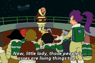 Now, little lady, those people's asses are living things too.