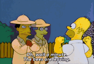 Oh, wait a minute. The bees are leaving. No! My sugar is melting! Melting! Oh, what a world! Oh, sugar.