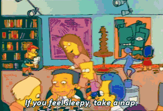 If you feel sleepy, take a nap. If you get bored, feel free to take out a book and start reading. What should I read, ma'am ? Anything you want, Bart. Oh ! A comic book ? How did this get mixed in here ?