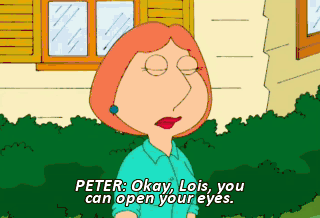 PETER: Okay, Lois, you can open your eyes. Bocce balls! I bought a tank. Are you out of your mind? Let me show you how the gun works. (SCREAMS) (LAUGHING)