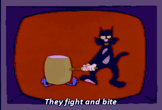 They fight and bite they bite and fight and bite bite, bite, bite fight, fight, fight the itchy and scratchy show