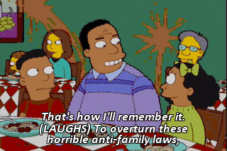That's how I'll remember it. (LAUGHS) To overturn these horrible anti-family laws,