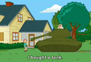 I bought a tank. Are you out of your mind? Let me show you how the gun works. (SCREAMS) (LAUGHING)