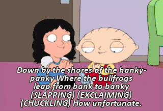 Down by the shores of the hanky-panky Where the bullfrogs leap from bank to banky (SLAPPING) (EXCLAIMING) (CHUCKLING) How unfortunate.