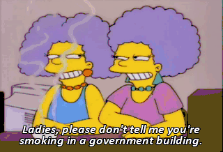 Ladies, please don't tell me you're smoking in a government building. Because that is precisely the kind of infraction... that can cost a couple of sisters their promotion.