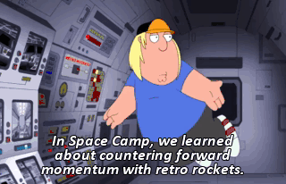 In Space Camp, we learned about countering forward momentum with retro rockets.