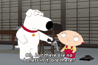 Oh, but there are no bullets in it, are there? Yeah, there are. I lied. Oh, you're so full of crap.