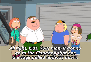 All right, kids. Your mom is gonna go to the Cinnabon that has the cage pulled halfway down.