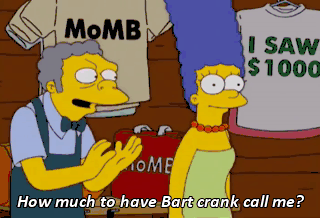 How much to have Bart crank call me? (CHUCKLING) That would be hilarious. That's just me, though. You know, I love to laugh.