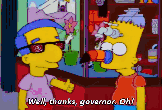 Well, thanks, governor. Oh! If you put dog doo on the suction cups, they'll stick better. Milhouse, I'm not gonna take dog doo... that's been on the dirty ground and put it on my face. I have a better idea.